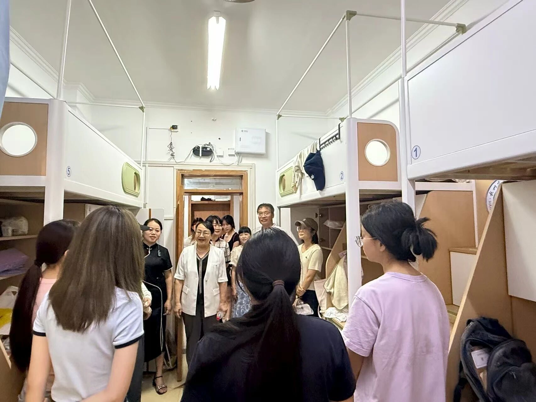 校党委副书记钱波在走访新生寝室过程中,细致关切新生入学适应状况与切实需求。她强调,大学阶段是拔节育穗、铸魂成才的关键时期,叮嘱同学们要牢固树立安全意识、科学规划学业生涯、积极融入集体生活,努力成长为具有家国情怀与国际视野的高素质人才。钱波副书记表示,学校始终坚守“为党育人、为国育才”的使命,全面贯彻“以生为本”办学理念,学校将会全力为每一位学生的成长成才和全面发展提供坚实保障。