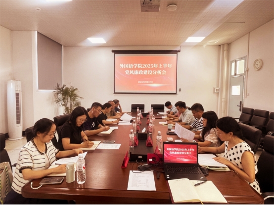为进一步加强党风廉政建设,强化领导班子对学院建设的政治引领、思想引领和作风引领,查找党风廉政建设方面存在的问题及整改措施,根据学校统一部署,9月12日上午,外国语学院党委召开2025年上半年党风廉政建设分析会。校纪委委员沈莉到会指导,会议由党委书记何宏主持,学院党政班子、纪委委员、党风党纪监督员参加。