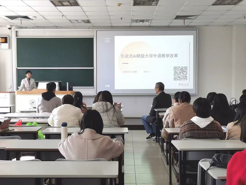 11月26日,外国语学院教师教学发展中心成功举办了一场教育技术的专家讲座,由副院长敬南菲教授主持。本次活动特邀王海啸教授作《生成式AI赋能大学外语教学改革》的学术报告。