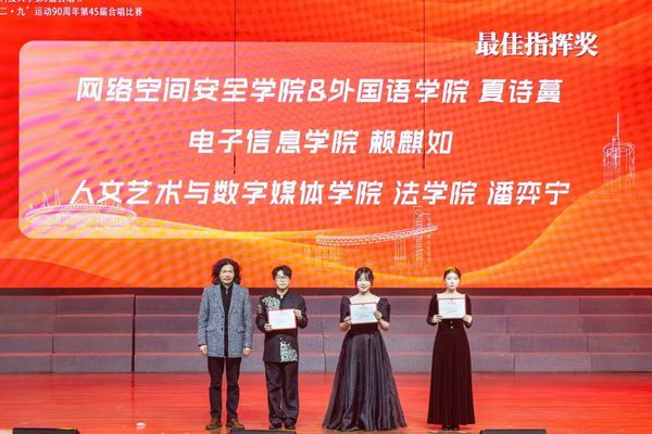 12月7日,我校“一二·九”运动90周年第45届合唱比赛顺利举行,外国语学院&网安学院合唱团斩获特等奖,外国语学院夏诗蔓荣获最佳指挥奖!