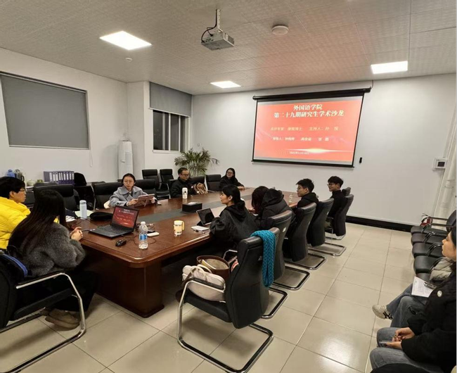 12月10日,外国语学院举办了第29期研究生学术沙龙。本次沙龙邀请康慨博士担任点评嘉宾,由25级研究生孙悦主持。学院各年级共10余名研究生参加了本次沙龙。