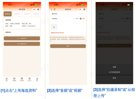 第三步:上传/录制海选资料