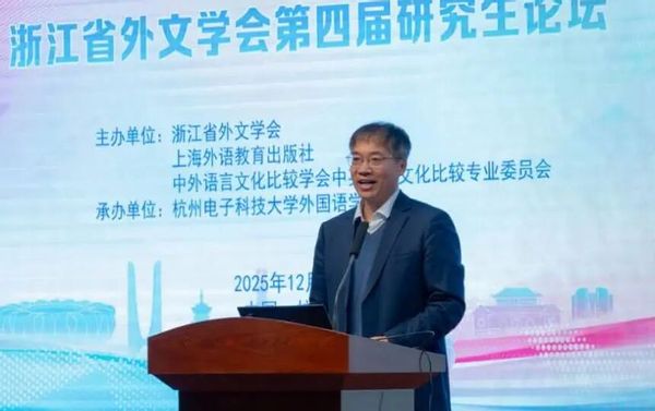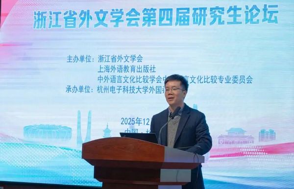 2025年12月6日,由浙江省外文学会、上海外语教育出版社、中外语言文化比较学会中英语言文化比较专业委员会联合主办,杭州电子科技大学外国语学院承办的“浙江省外文学会第四届研究生论坛”在我校下沙校区成功举办。论坛围绕外国语言文学研究的前沿议题,吸引了来自国内外高校的资深学者与优秀研究生代表齐聚一堂,共话学科发展,激发学术创新。