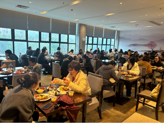 近日,全体女教师齐聚学校国际交流中心二楼自助餐厅。在这个温暖的集体中,大家暂时卸下了平日讲台上的严谨与忙碌,围坐一堂。学院领导及部分男教师也一同出席,与大家共度这段温馨美好的时光。餐厅内布置得春意盎然,处处洋溢着节日的喜庆与祥和。丰盛的自助餐食琳琅满目,香气四溢,每一道佳肴都仿佛在诉说着春天的故事。老师们一边品尝着精致的美味,感受着“舌尖上”的春之韵味,一边畅谈工作心得,分享生活中的趣事与感悟。在美食与春风的交织中,欢声笑语不断,集体的温暖如春日暖阳般照耀在每个人的心间,让每一位女教师都深切感受到了来自学院大家庭的关爱与支持。